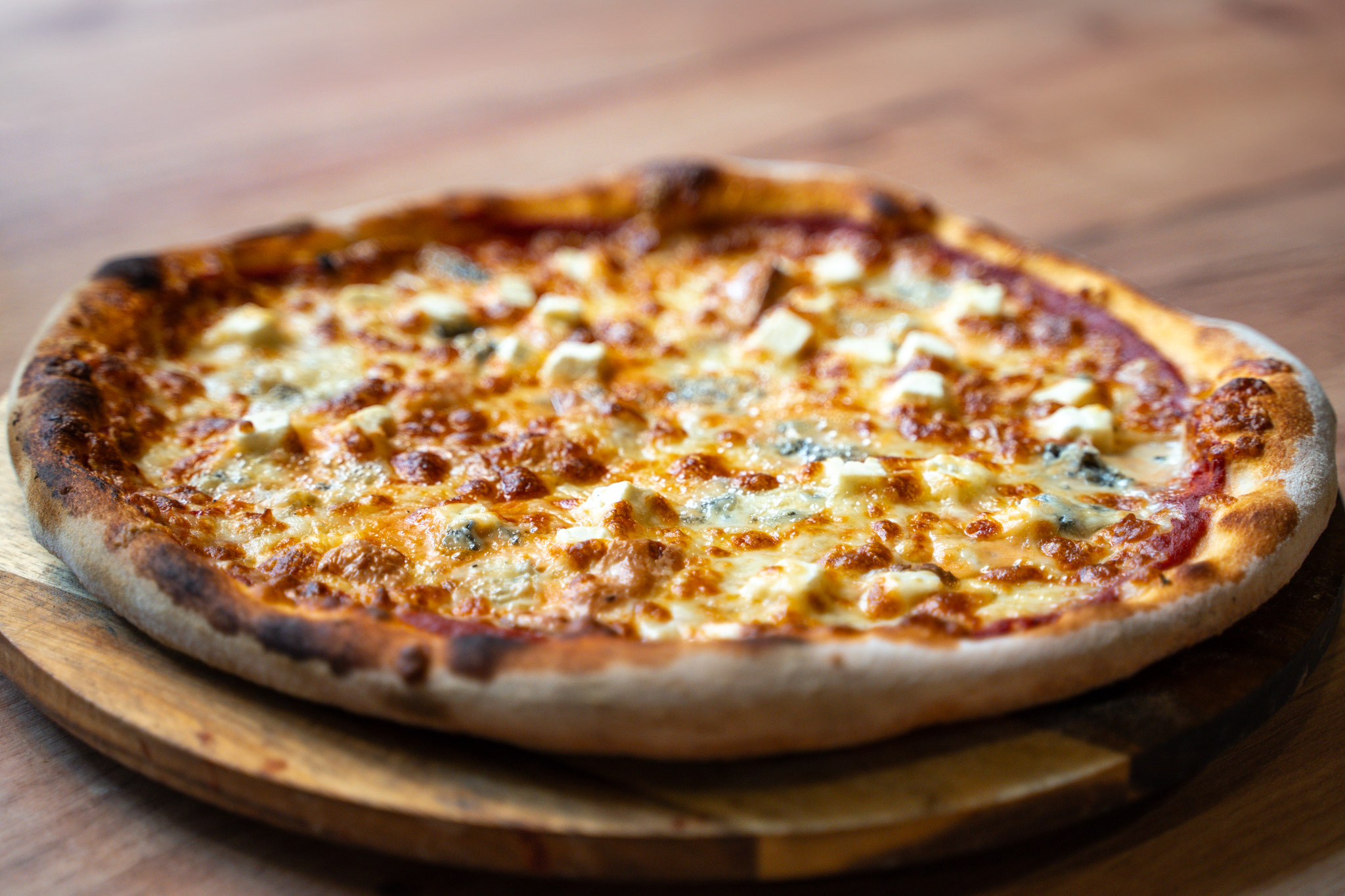 Sos pomidorowy, spianata piccante, salami pepperoni, czerwona cebula, pasta truflowa, mozarella fior di latte, mascarpone